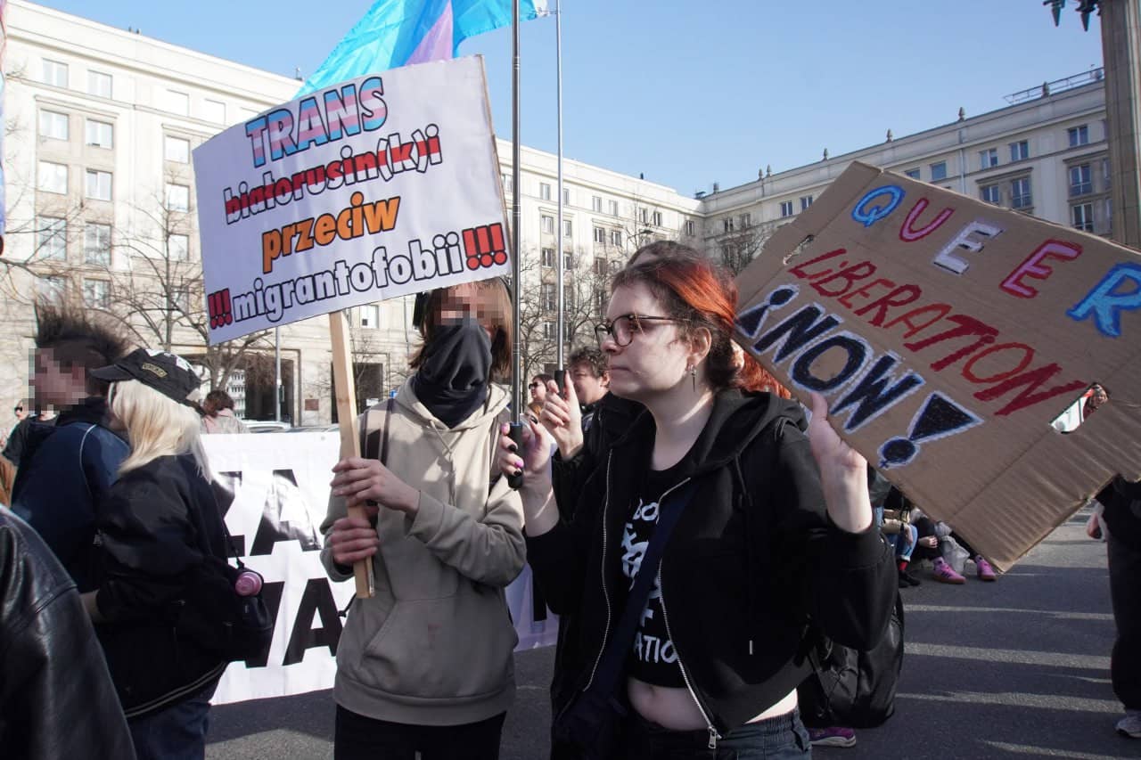 8 марта в Варшаве прошла ежегодная феминистская демонстрация «Манифа». Она традиционно собирает тысячи людей, которые выходят на марш за равенство, права женщин и социальную справедливость. В этом году в демонстрации вновь приняли участие трансгендерные беларус_ки — активист_ки TG House и представитель_ницы сообщества, живущие в Польше.